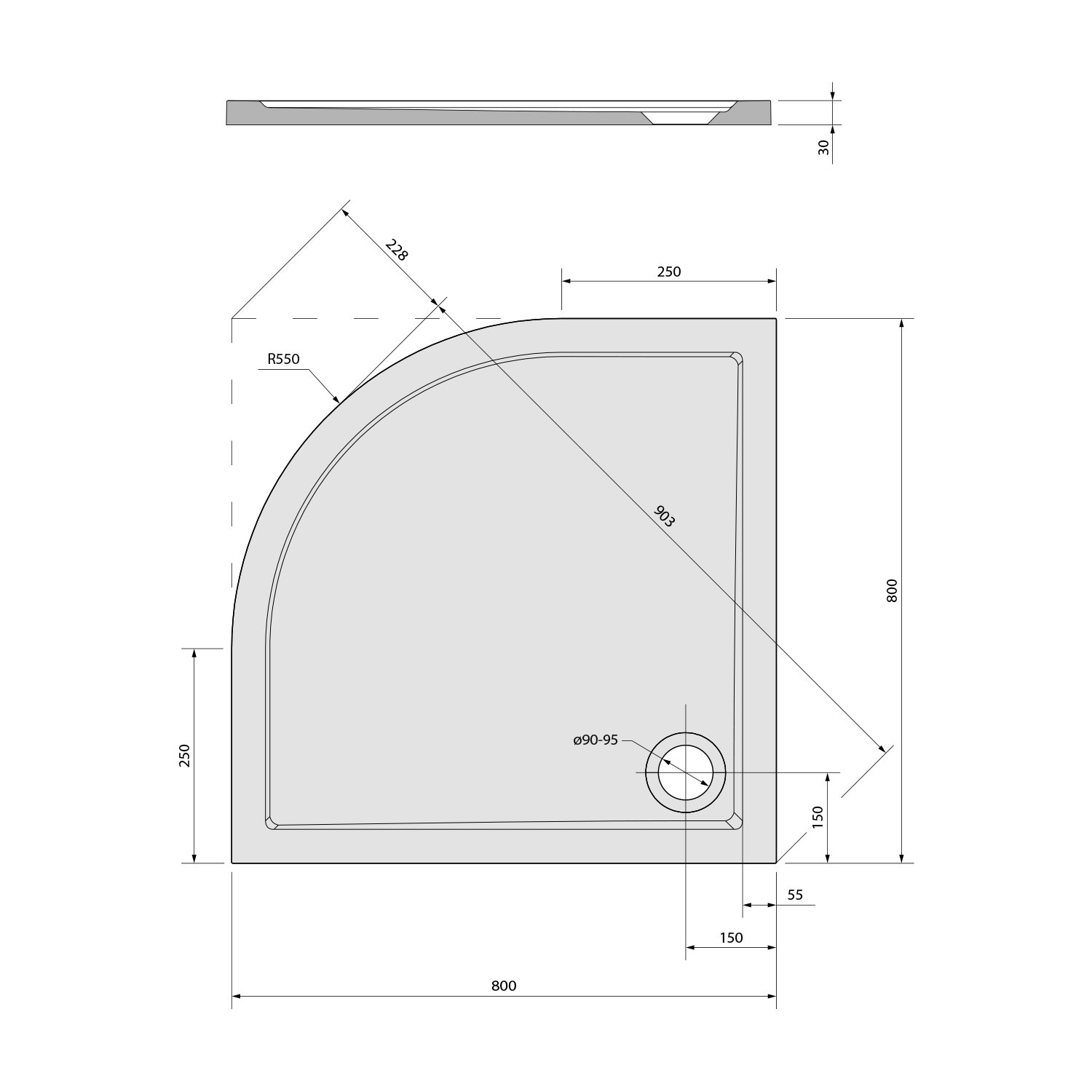 SERA sprchová vanička z litého mramoru, čtvrtkruh 80x80cm, R550, bílá
