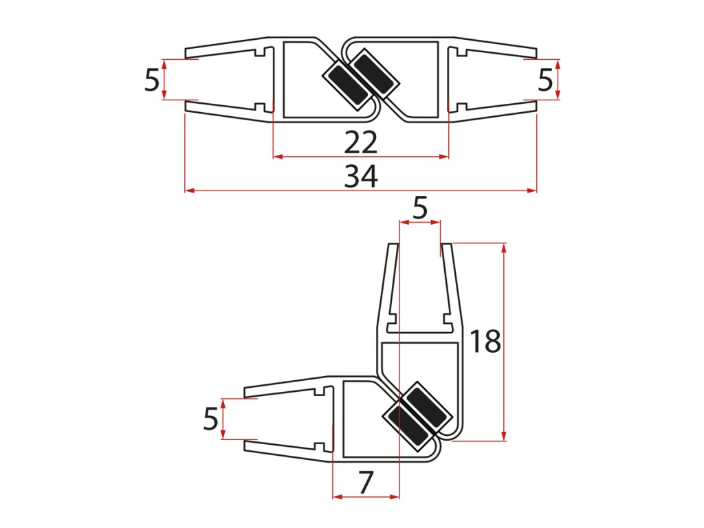Set magnetických těsnění 45°pro sklo 5/5mm, 2000mm