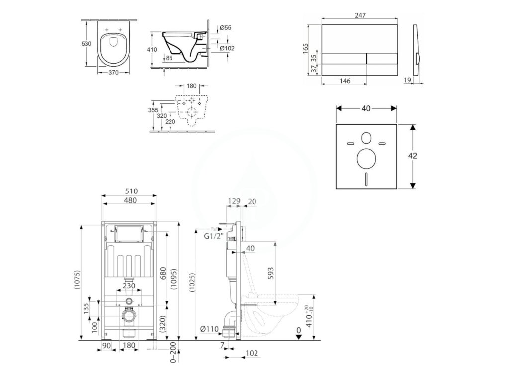 - pro montáž závěsného WC s připojovací roztečí 180 mm