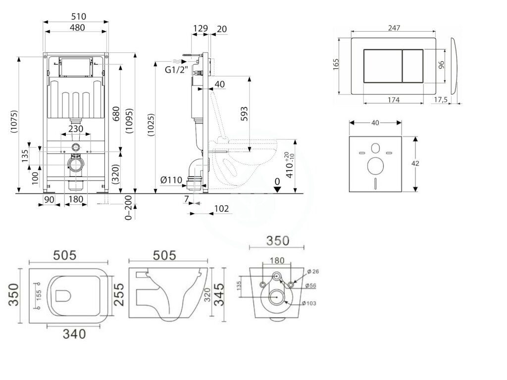 - Pro montáž závěsného WC s připojovací roztečí 180 mm