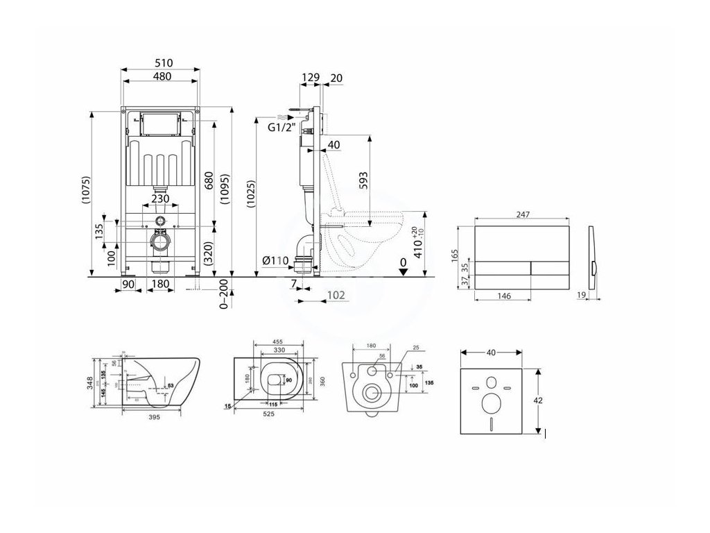 - Pro montáž závěsného WC s připojovací roztečí 180 mm