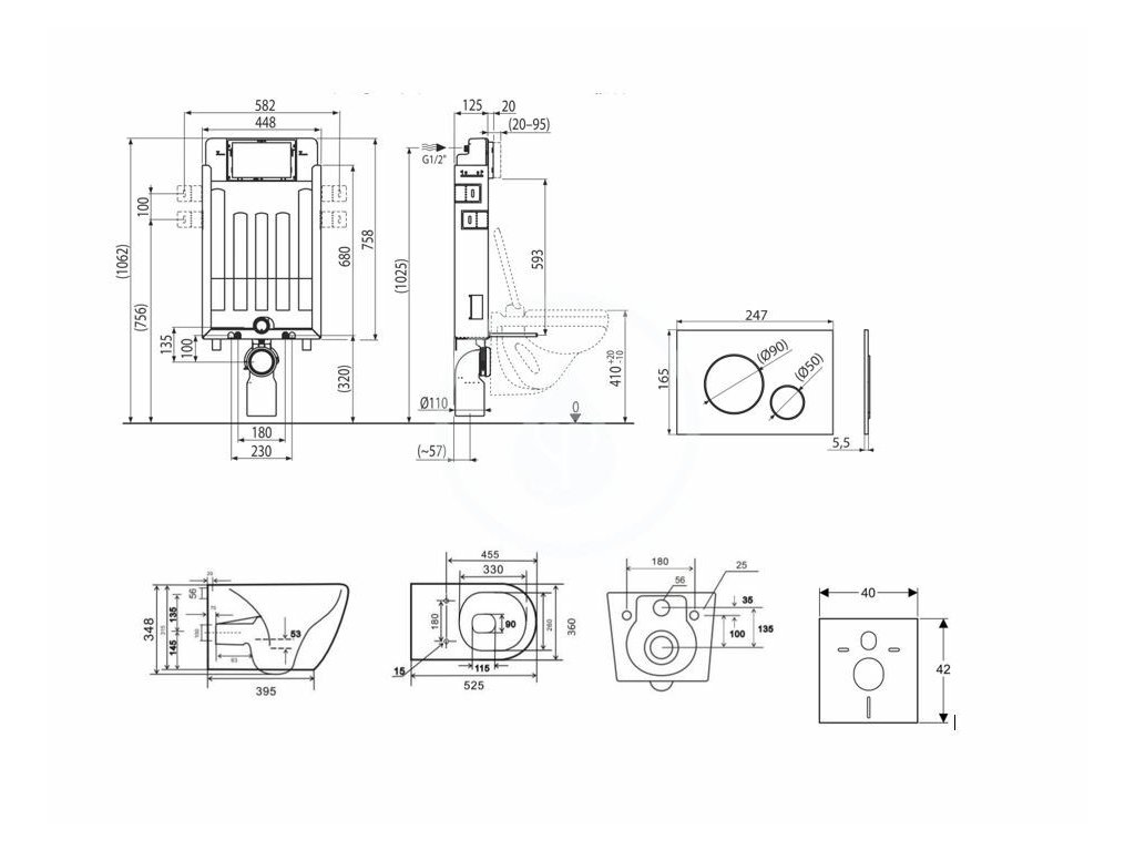 Set předstěnové instalace pro zazdění, klozetu se sedátkem softclose Gaia tlačítka Gemini II