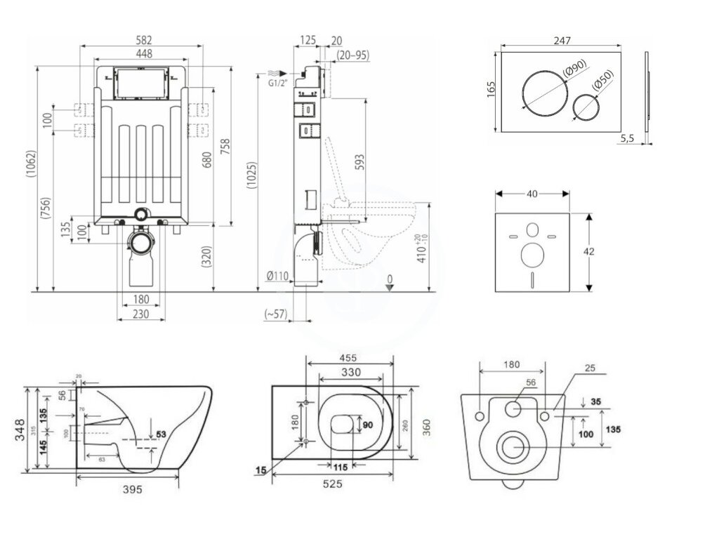 - Fixační set pro uchycení WC mísy: závitová tyč M12 – 2 ks, podložky – 4 ks, krytka – 2 ks, matice – 2 ks, chránička závitu – 2 ks