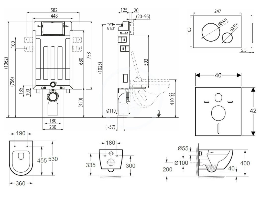 - Pro montáž závěsného WC s připojovací roztečí 180 mm