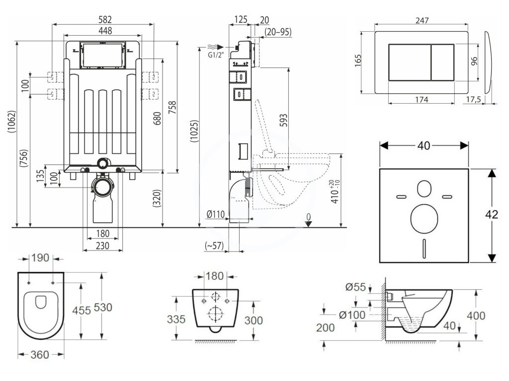 - Pro montáž závěsného WC s připojovací roztečí 180 mm