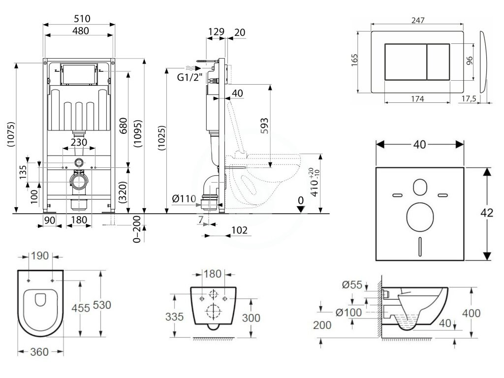 - Pro montáž závěsného WC s připojovací roztečí 180 mm