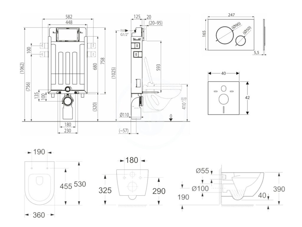 - Pro montáž závěsného WC s připojovací roztečí 180 mm