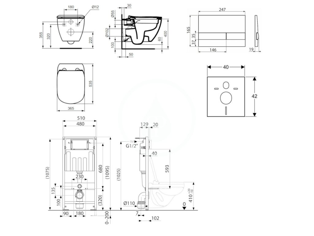 - pro montáž závěsného WC s připojovací roztečí 180 mm
