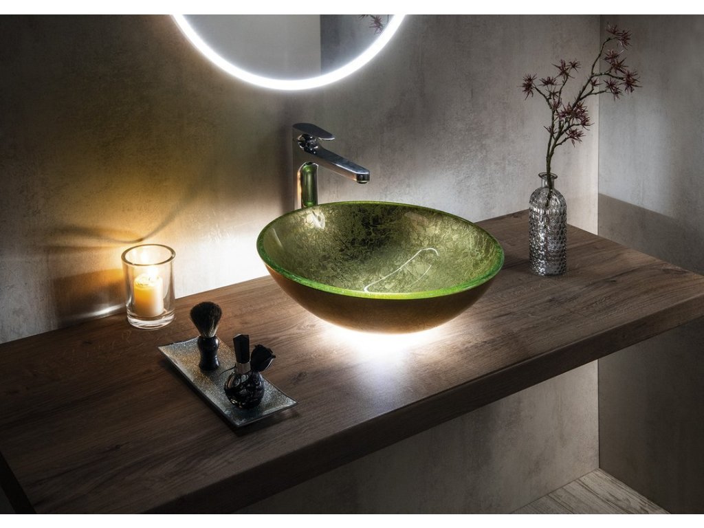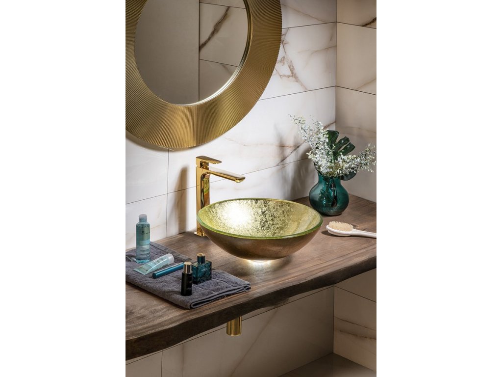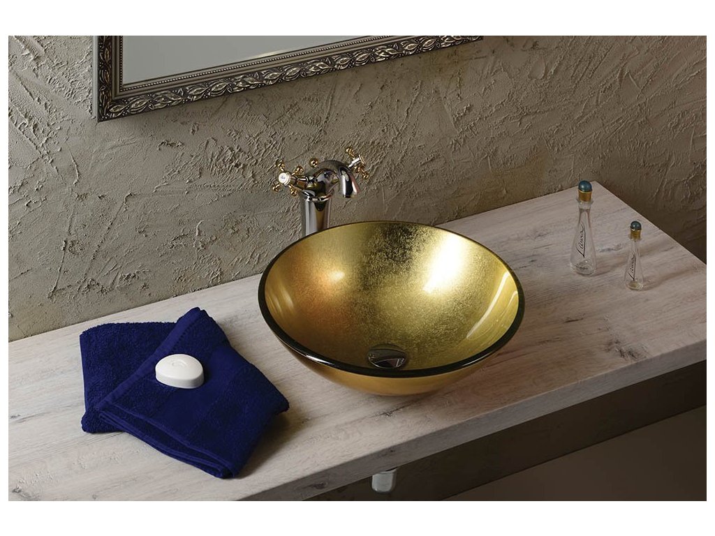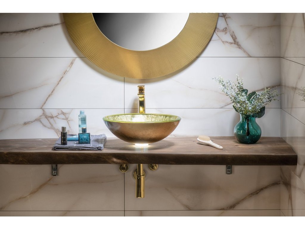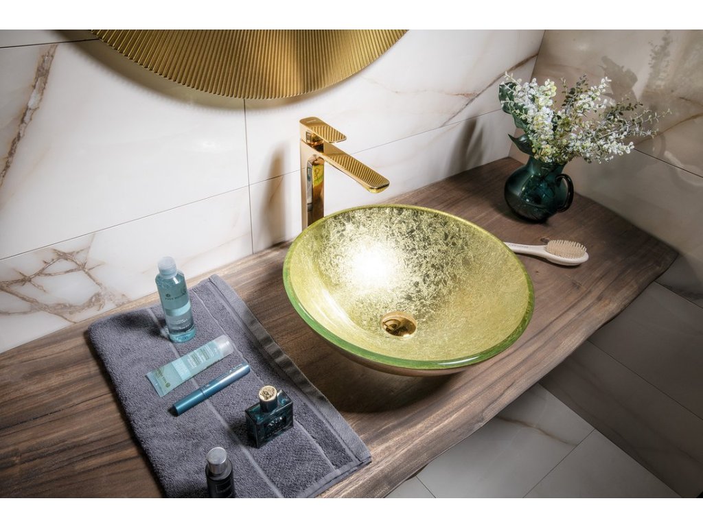 SHAY skleněné umyvadlo na desku Ø 42cm, zlatá