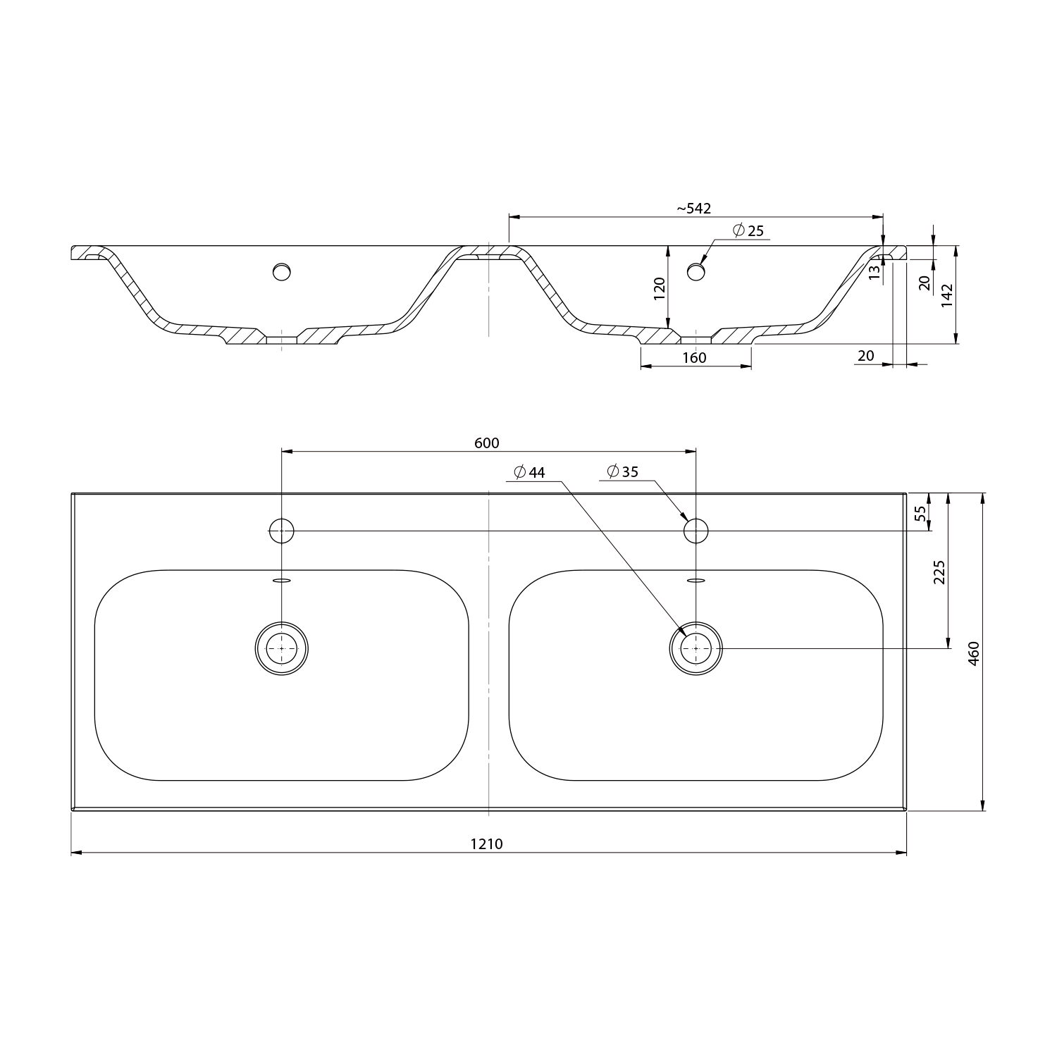 SIDRA dvojumyvadlo, litý mramor, 121x46cm, bílá