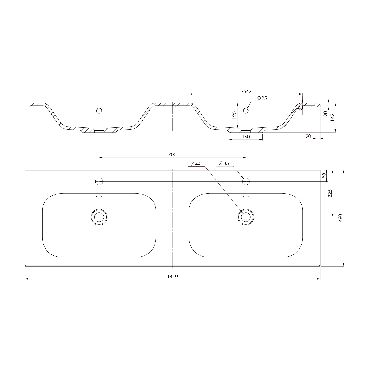 SIDRA dvojumyvadlo, litý mramor, 141x46cm, bílá