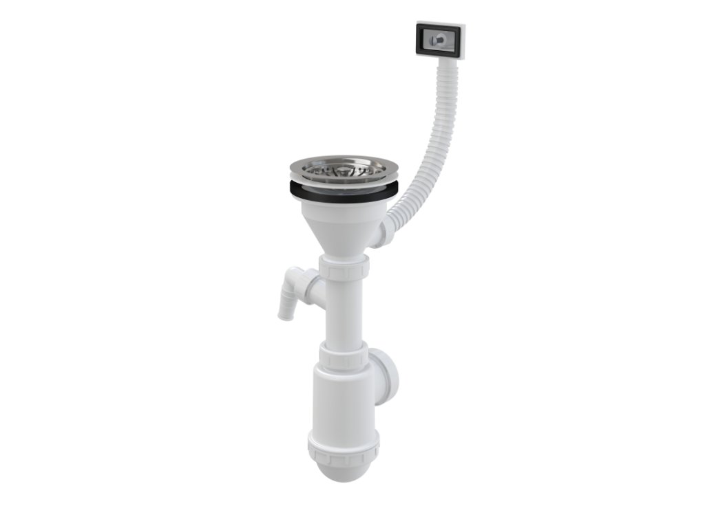 Sifon dřezový s nerezovou mřížkou DN115, flexi přepadem a přípojkou