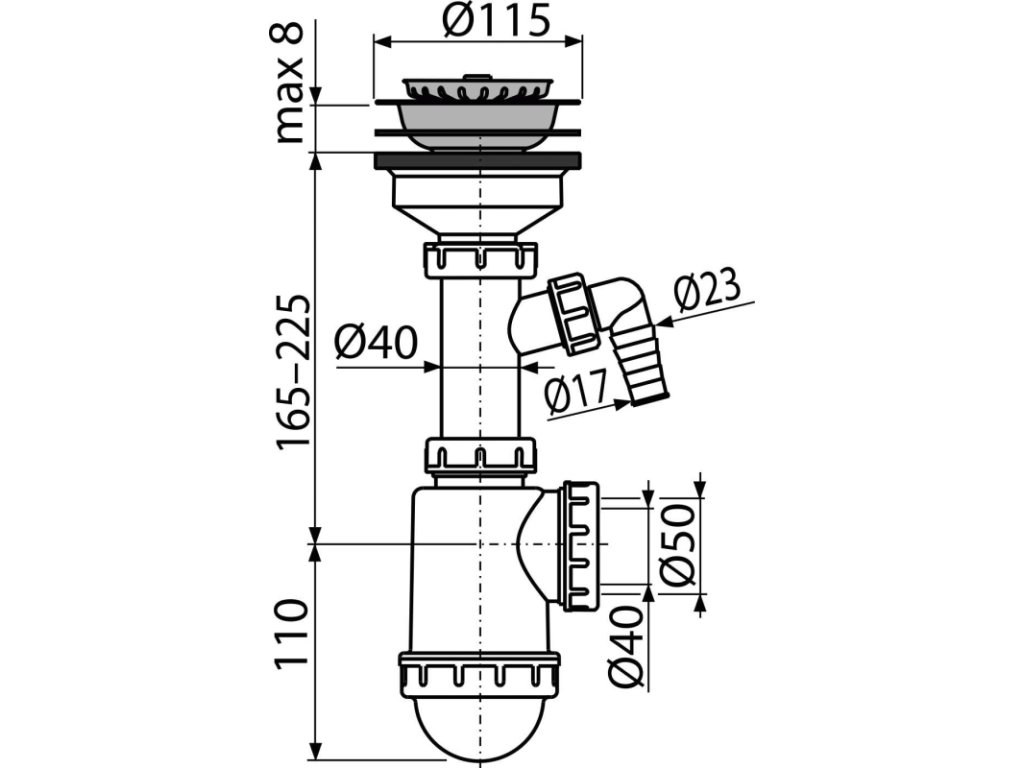 Sifon dřezový s nerezovou mřížkou DN115 a přípojkou
