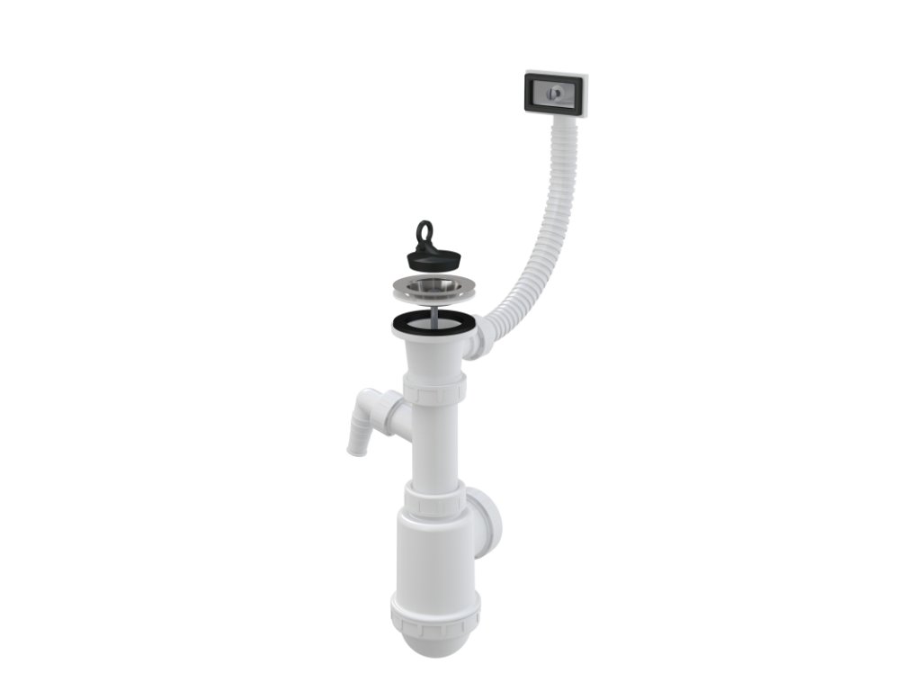 Sifon dřezový s nerezovou mřížkou DN70, flexi přepadem a přípojkou