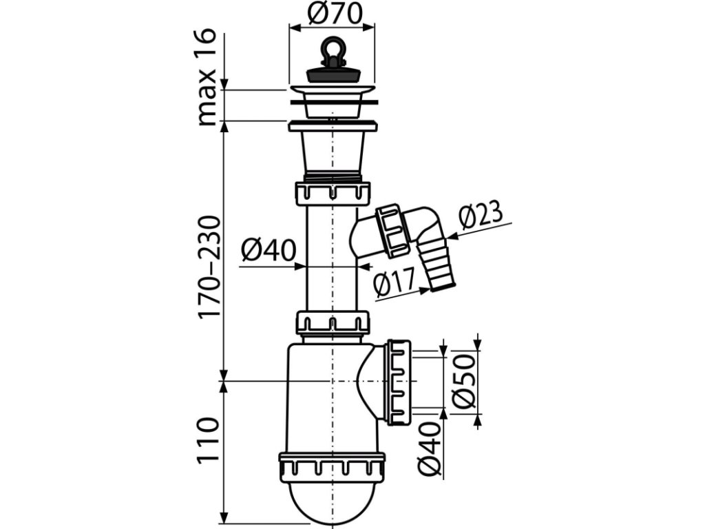 Sifon dřezový s plastovou mřížkou DN70 a přípojkou