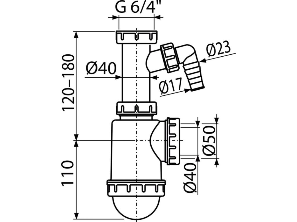 Sifon dřezový s převlečnou maticí 6/4" a přípojkou