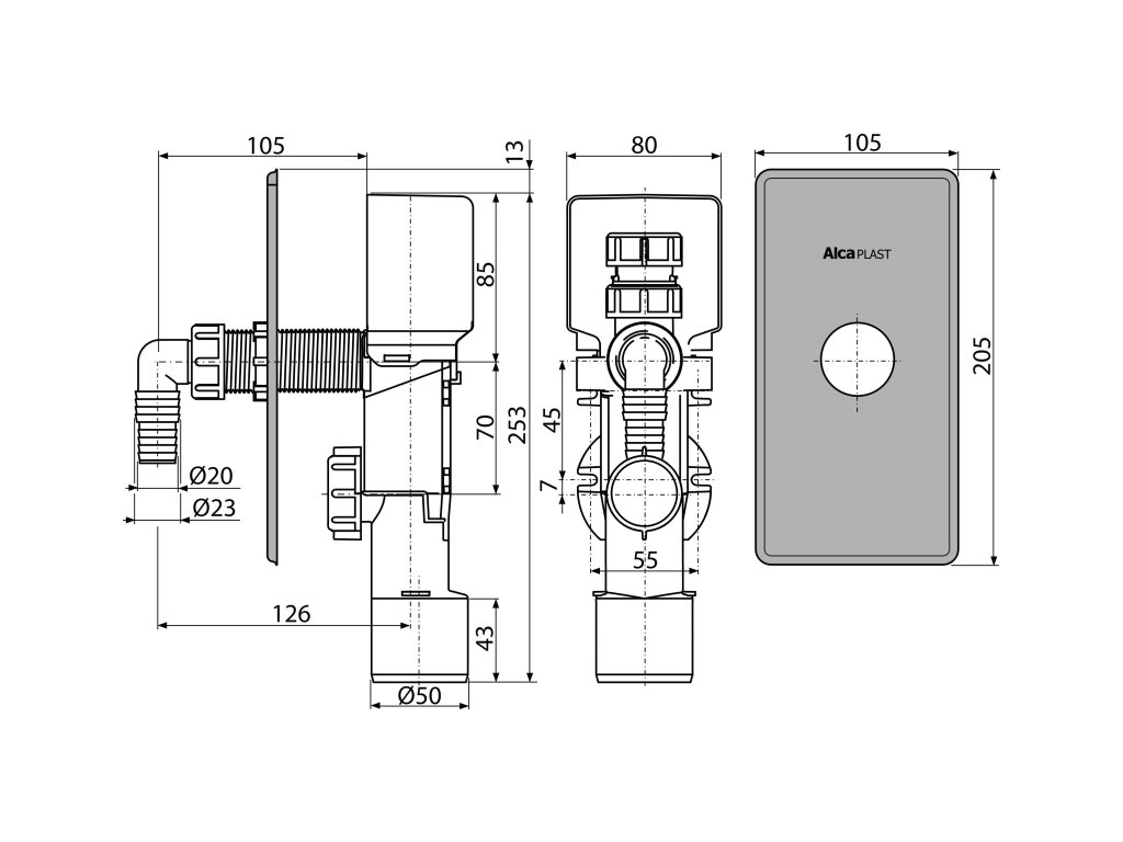 Sifon pračkový podomítkový s přivzdušněním, nerez DN40 a DN50