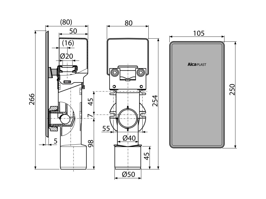 Sifon pro odkapávající kondenzát podomítkový, nerez DN40 a DN50