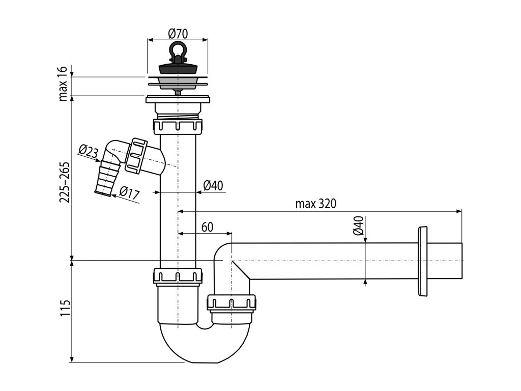 Sifon trubkový s nerezovou mřížkou DN70 a přípojkou