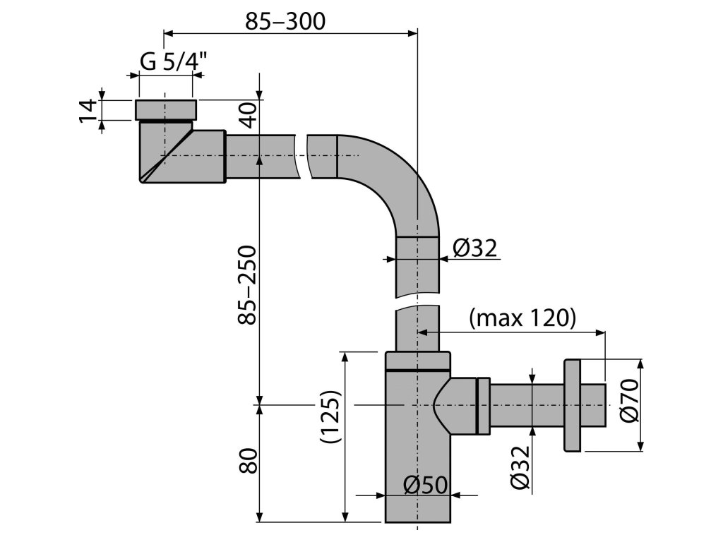 Napojení na odpadní trubku Ø32 mm