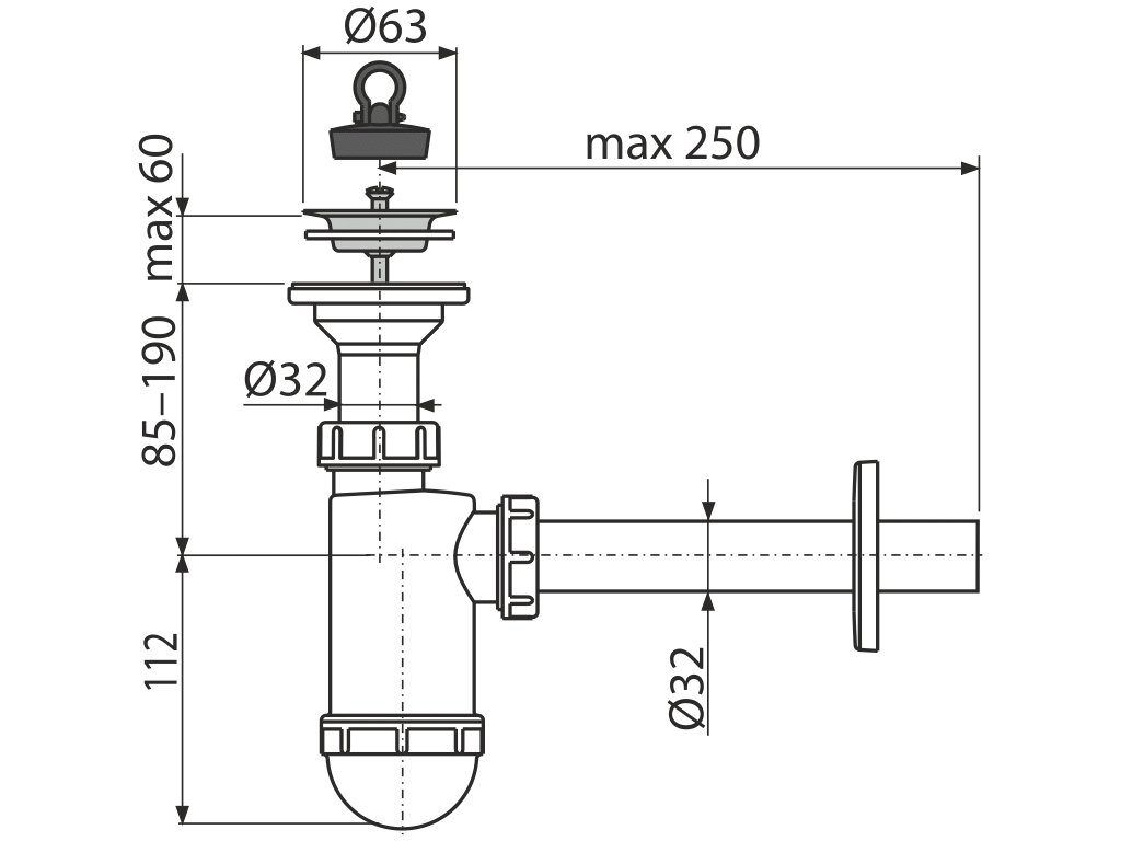 Sifon umyvadlový DN32 s nerezovou mřížkou DN63