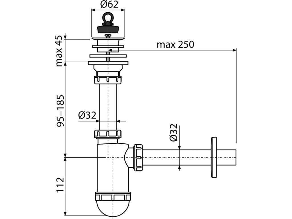 Sifon umyvadlový DN32 s plastovou mřížkou DN63