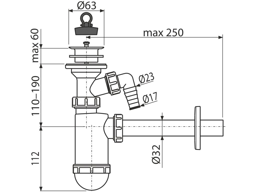 Sifon umyvadlový DN32 s přípojkou a plastovou mřížkou DN63