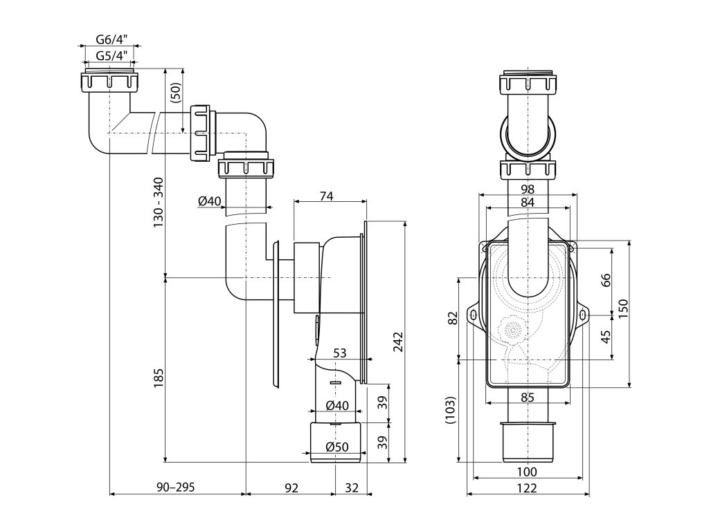 Úspora místa pod umyvadlem, sifon skryt pod omítkou