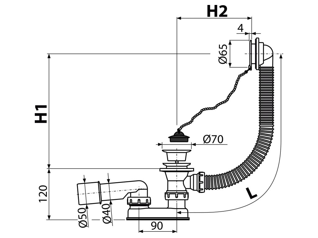 Použití:Pro odtok vody z vany do odpadu