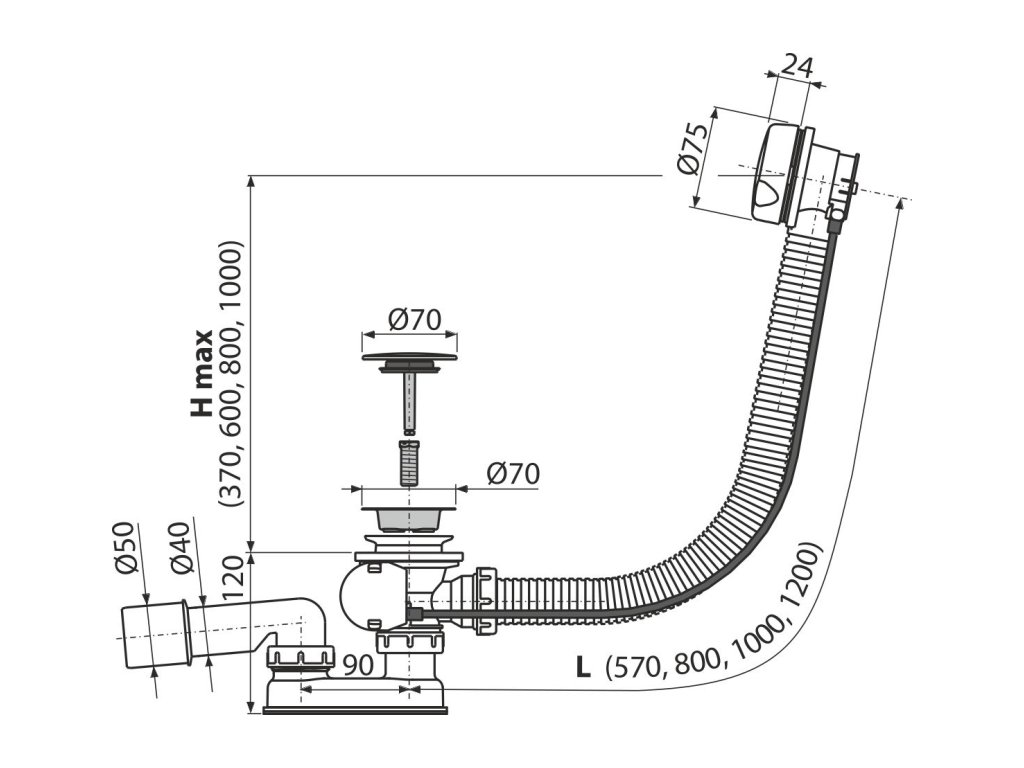 Zápachová uzávěra z polypropylenu, tepelně a chemicky odolná, podélně svařovaná