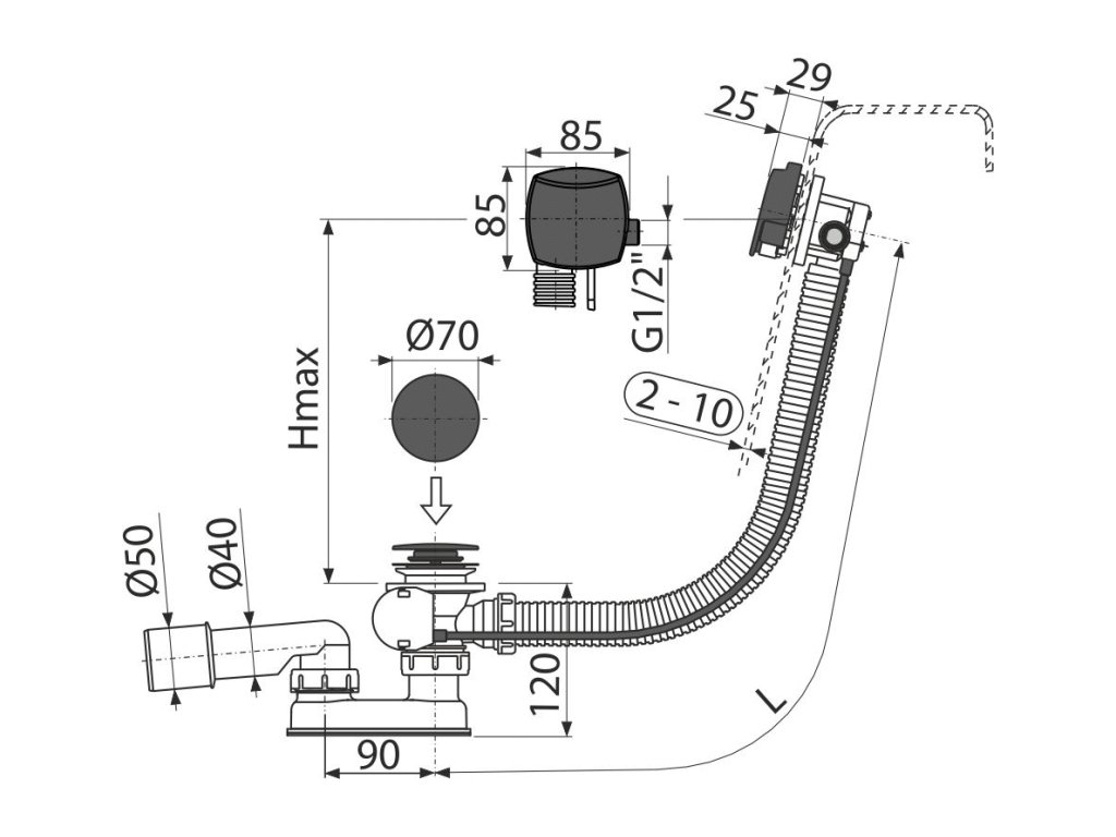 Sifon vanový automat s napouštěním přepadem, černá-mat