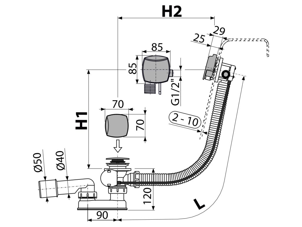 Minimální zástavní prostor do vany – viditelná pouze ovládací hlavice