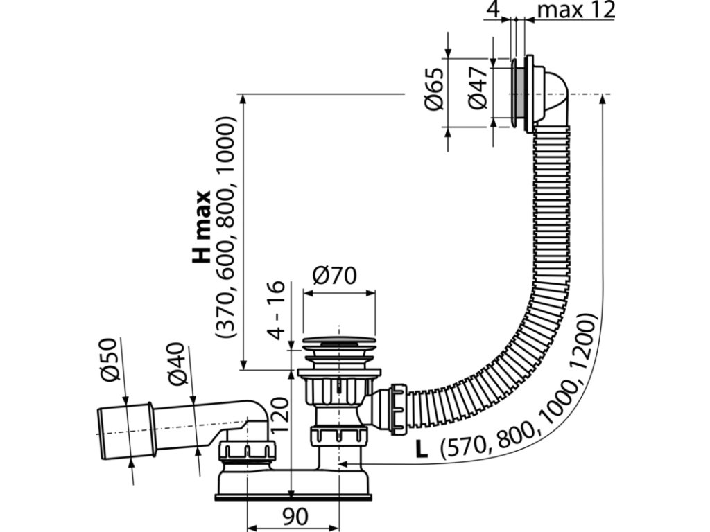 Zápachová uzávěra z polypropylenu, tepelně a chemicky odolná, podélně svařovaná
