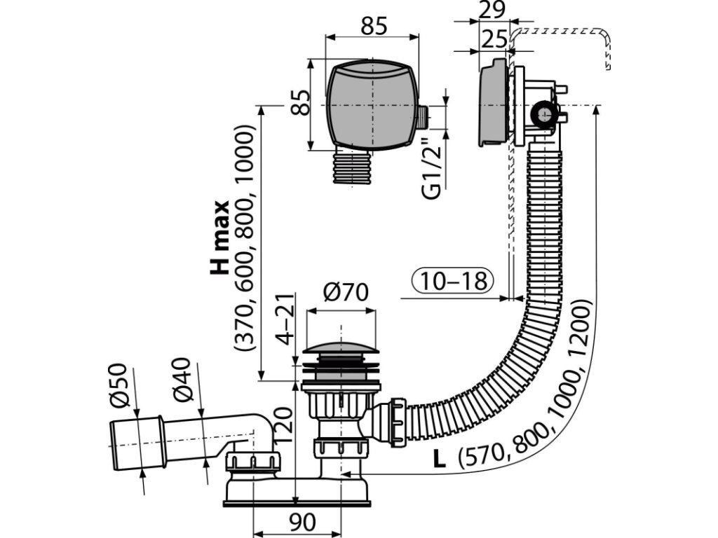 Délka vanového sifonu 80 cm
