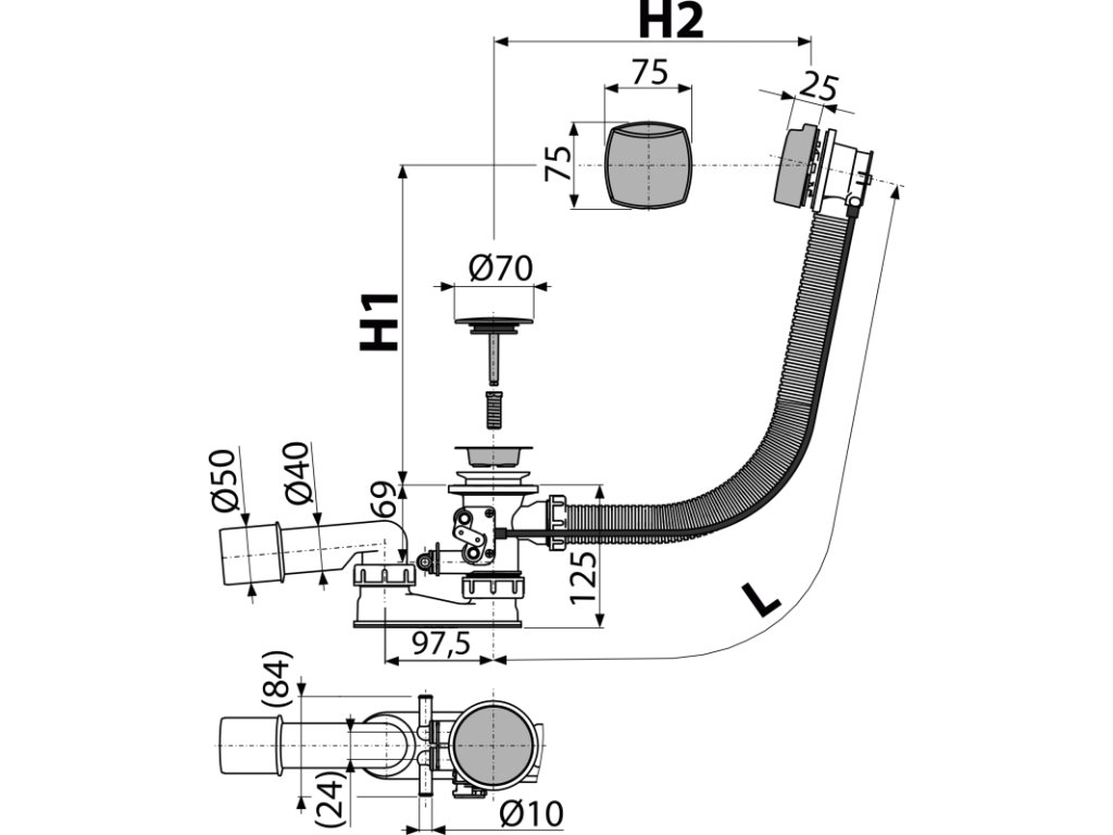 Délka vanového sifonu 120 cm