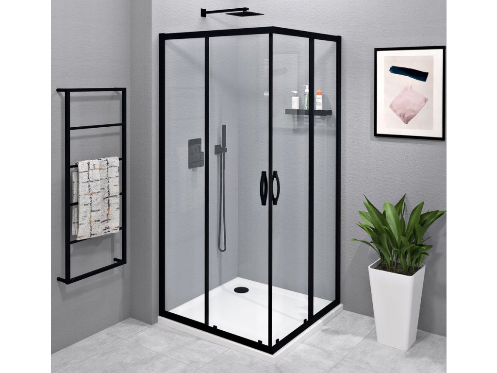 - Čtvercové a obdélníkové zástěny s rohovým vstupem vytvoříte spojením dvou posuvných dveří pro rohový vstup