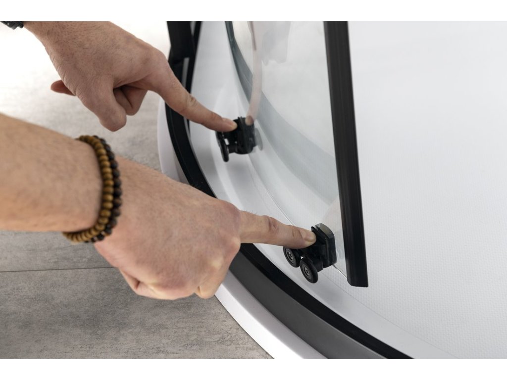 Při návrhu rámových sprchových zástěn SIGMA SIMPLY BLACK byl kladen důraz na eleganci, funkčnost a zejména snadnou a rychlou instalaci. Tenké profily z leštěného hliníku zachovávají vzdušnost a pro pohodlný úchop navržené kovové madlo potěší každého příznivce moderního stylu. Pro snadnou údržbu u posuvných dveří slouží spodní odklopný systém pojezdů, snadnost otevírání zajišťují zdvojené ložiskové pojezdy.