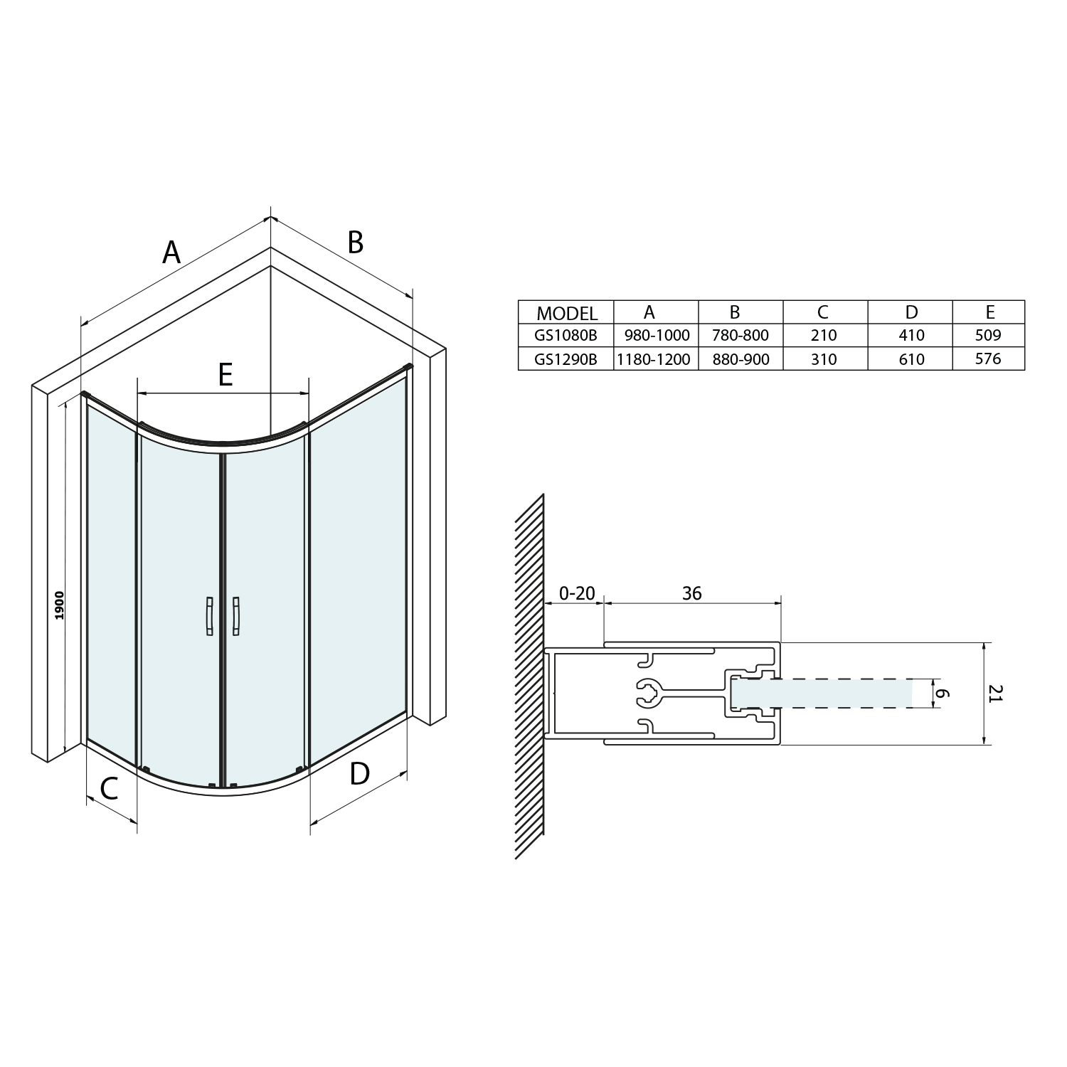 - Čtvrtkruhové zástěny a čtvrtkruhové zástěny s prodlouženou stěnou s posuvnými dveřmi