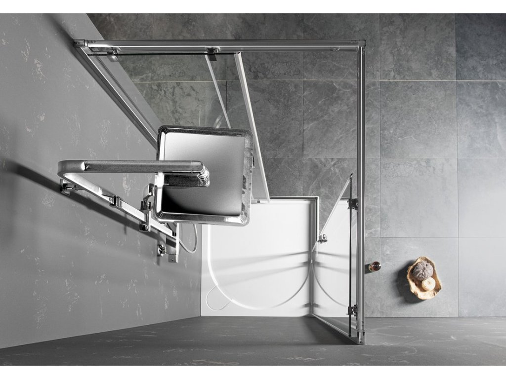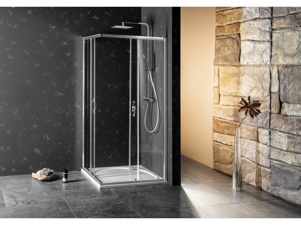 - Kombinací boční stěny a dveří získáte obdélníkovou/čtvercovou zástěnu - na výběr dveře posuvné a pivotové