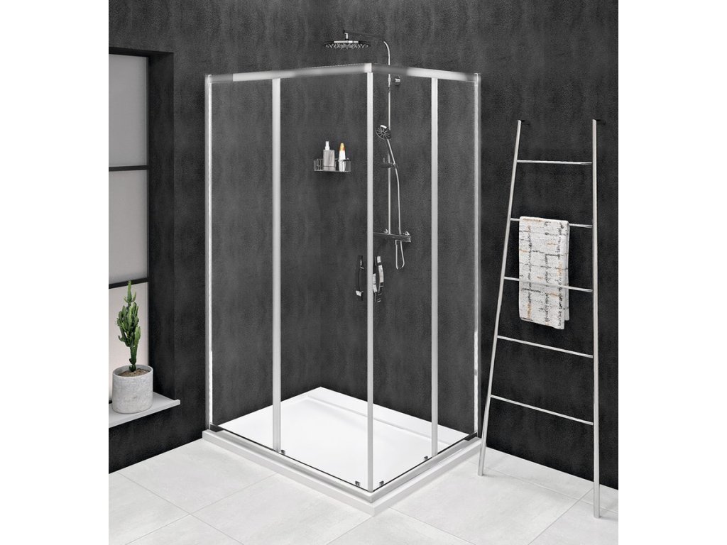 - Čtvercové a obdélníkové zástěny s rohovým vstupem vytvoříte spojením dvou posuvných dveří pro rohový vstup