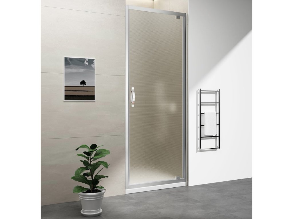 - U pivotových dveří je sklo uchyceno v otočném pivotovém pantu, tento mechanismus poskytuje dlouhou životnost