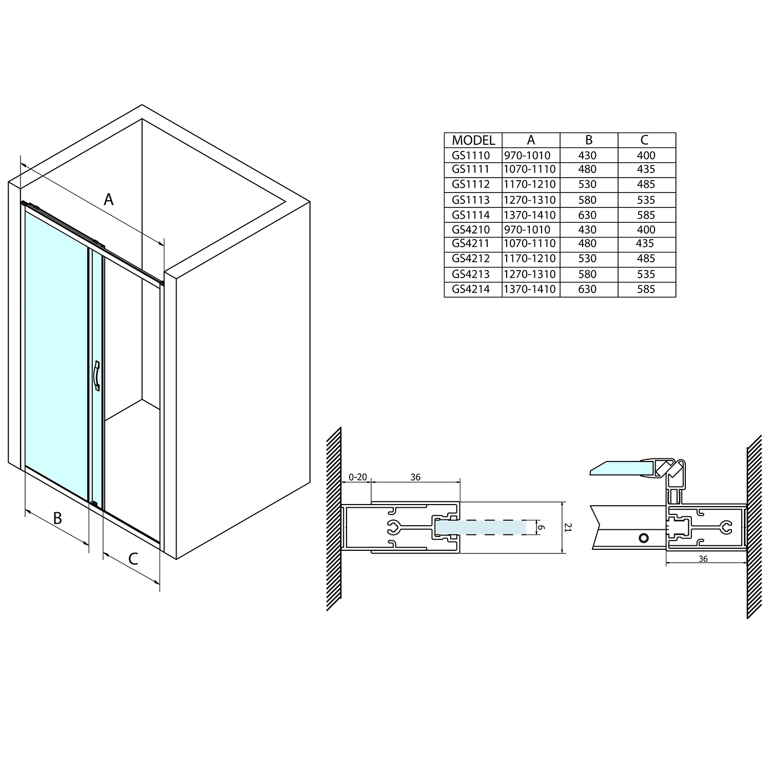 Stěnový profil poskytuje nastavitelnost až 20 mm pro vyrovnání nerovností.