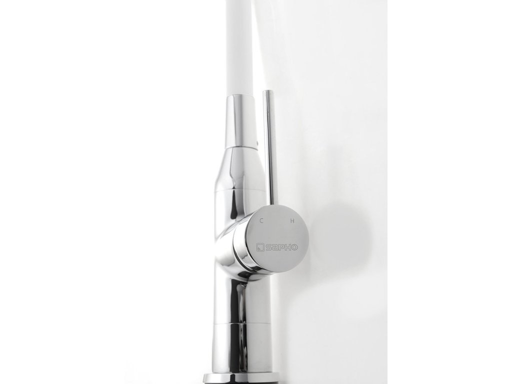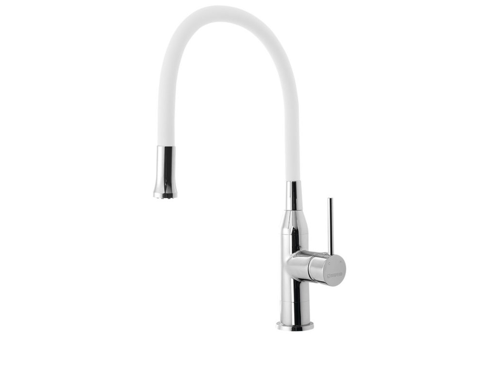 SILI stojánková dřezová baterie, flexibilní ramínko, bílá/chrom
