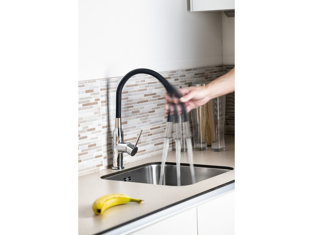 SILI stojánková dřezová baterie, flexibilní ramínko, černá/chrom