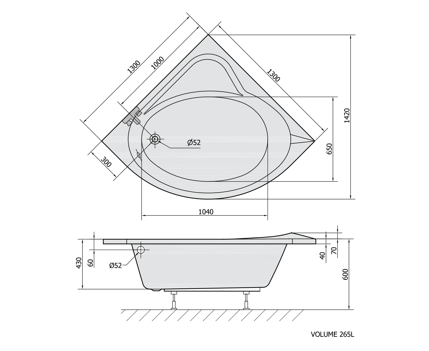 SIRIUS rohová vana 130x130x43cm, bílá