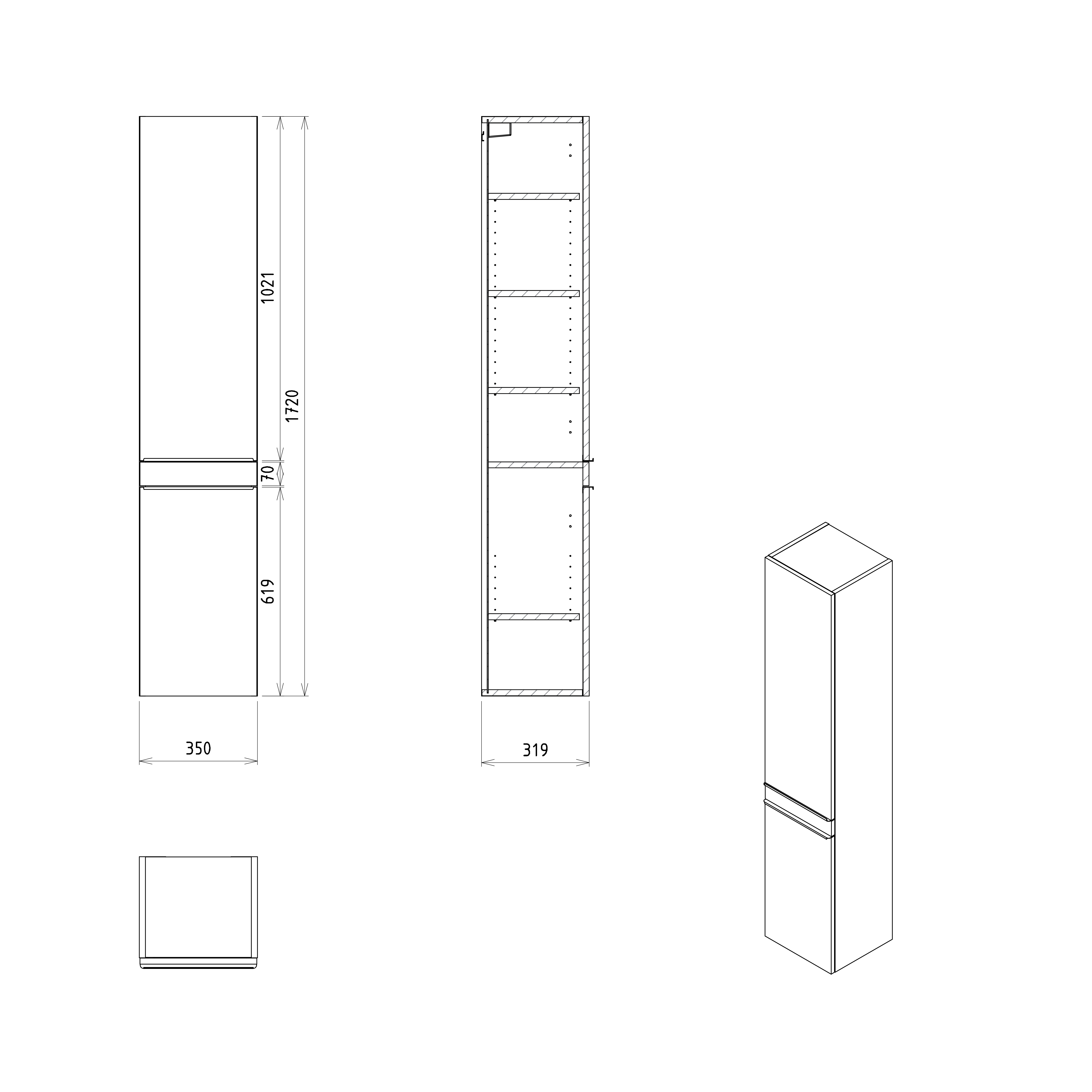 SITIA skříňka vysoká 35x172x32cm, 2x dvířka, levá/pravá, bílá mat