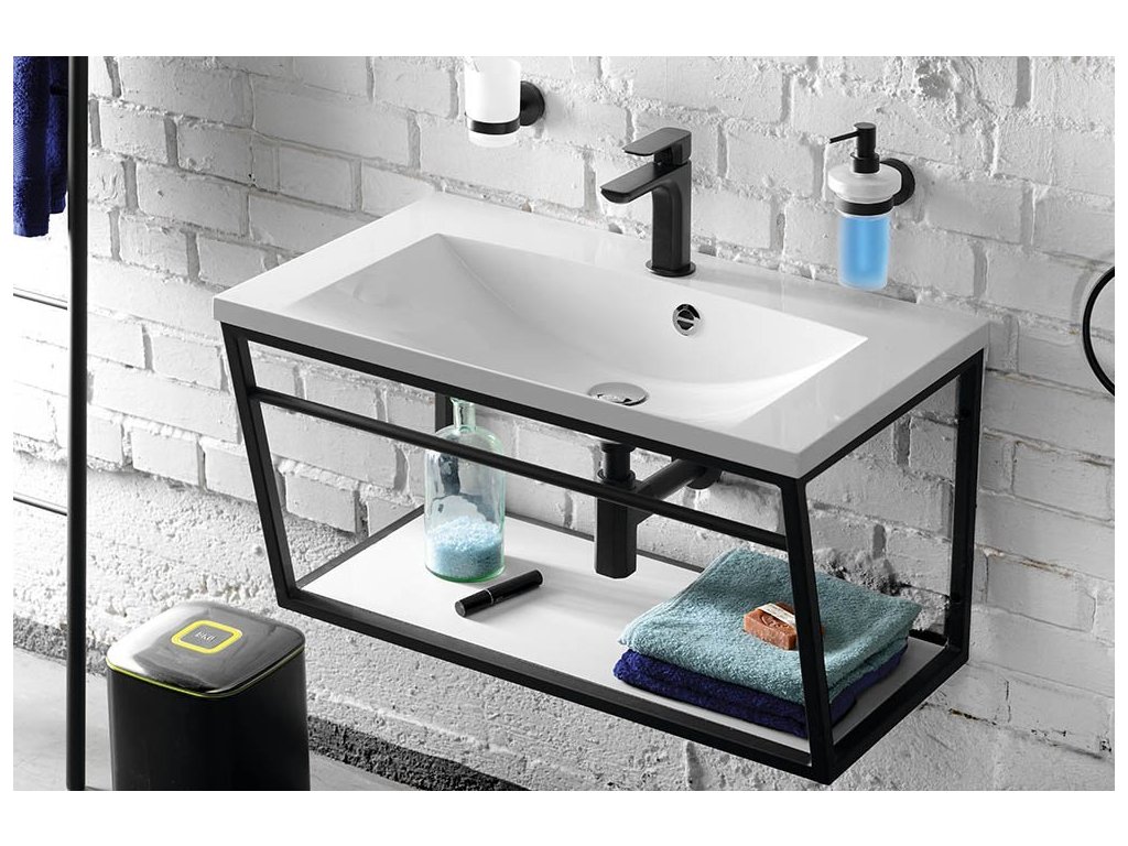 - Konstrukce pod umyvadlo, s bílou policí z lakované MDF desky.