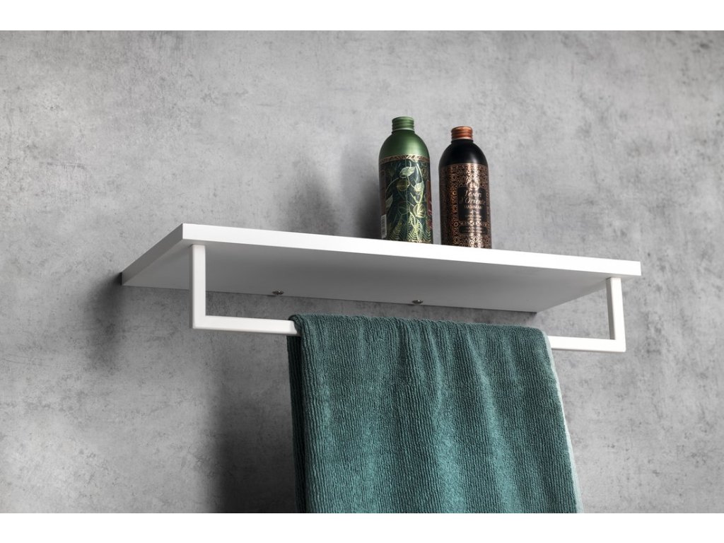 SKA polička na ručníky s hrazdou 600x250mm, bílá mat