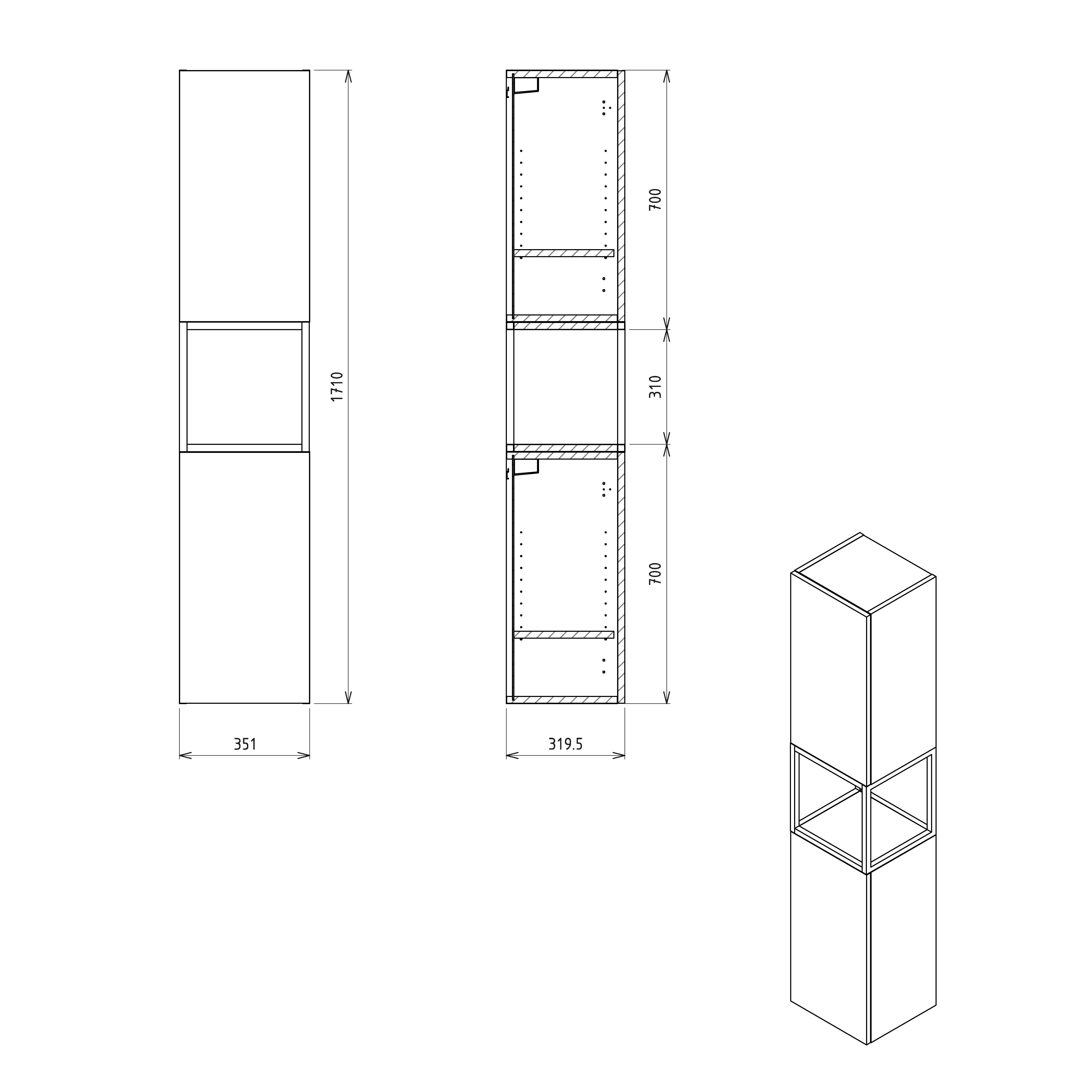 SKARA skříňka 35x171x32cm, 2x dvířka, levá/pravá, černá mat/dub Collingwood