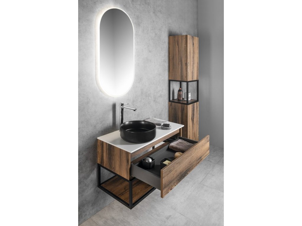 Konstrukce ze série SKARA jsou vhodné do koupelen zařizovaných v moderním i industriálním stylu. Skvěle je doplní vysoká skříňka SKARA ve stejném dekoru nebo skříňky a zrcadla TREOS s rámem v dřevěném dekoru. Perfektní je i kombinace s podsvíceným zrcadlem SORT v černém hliníkovém rámu.